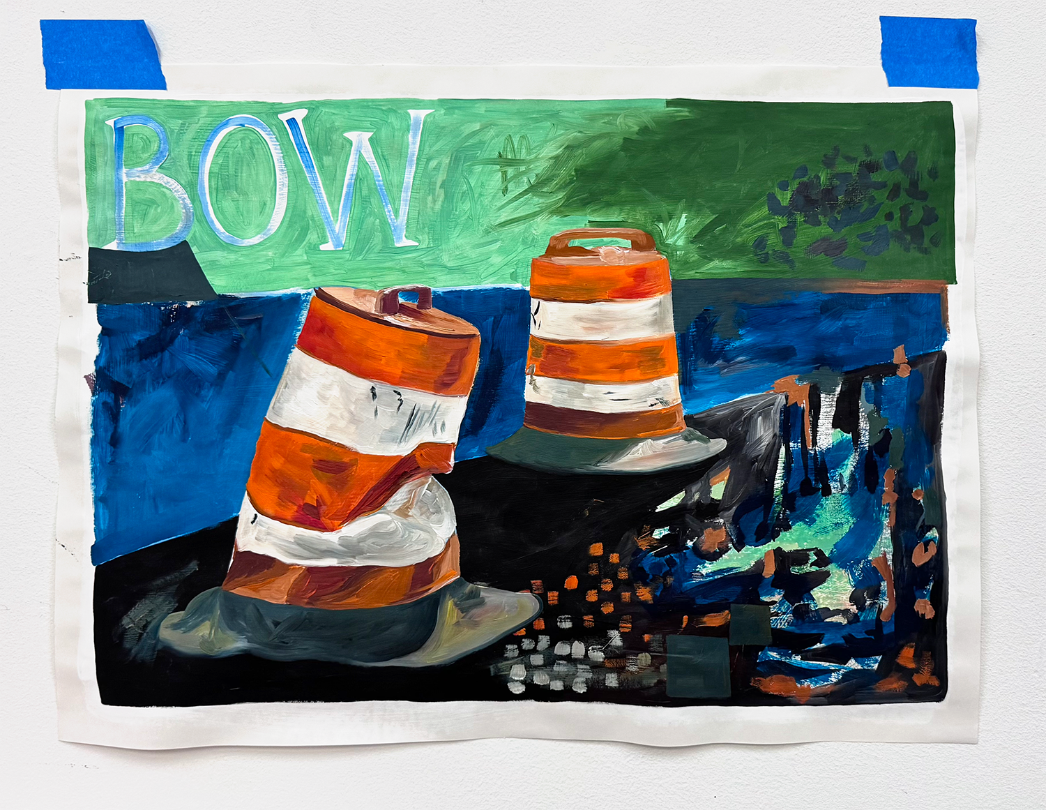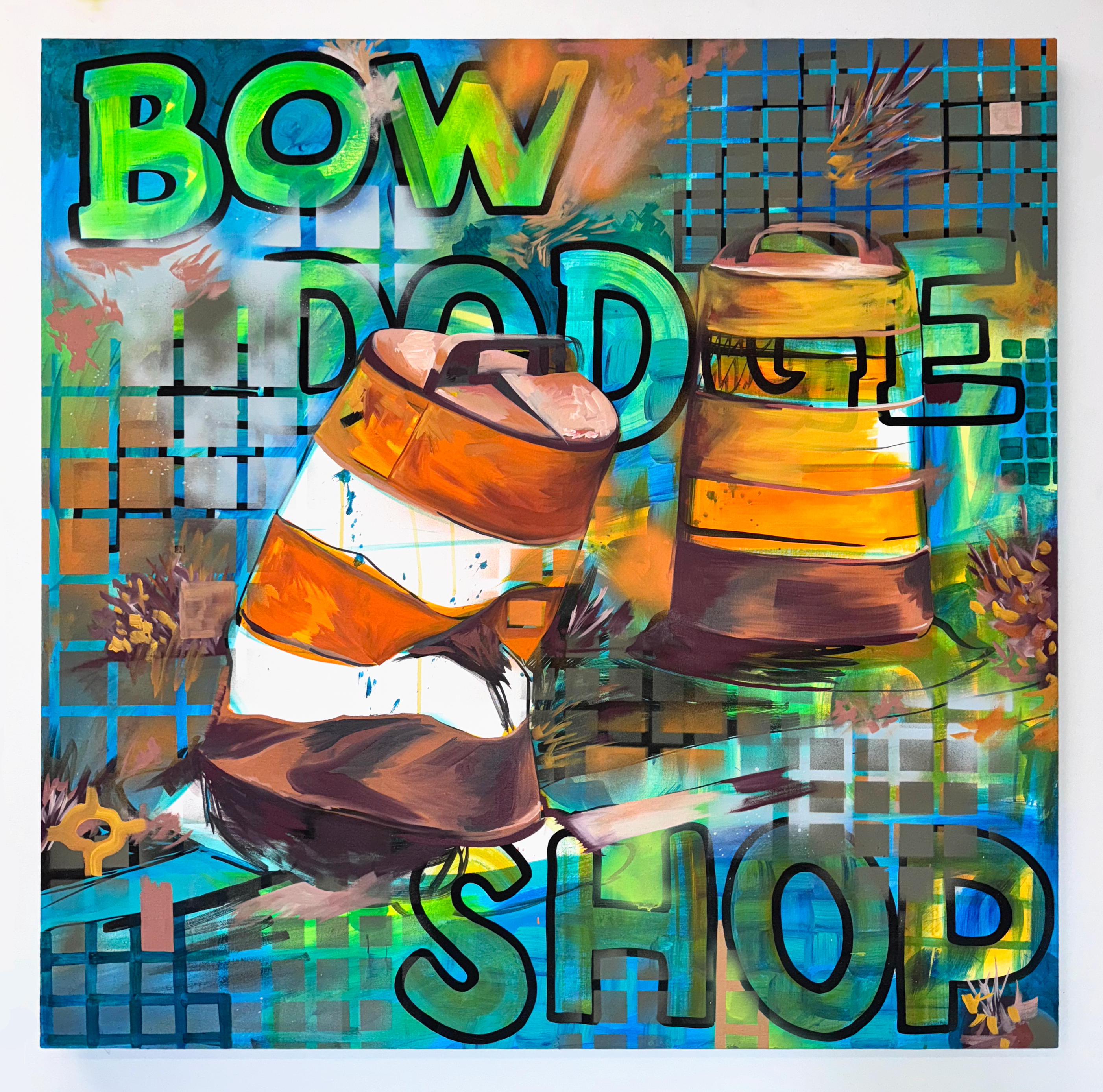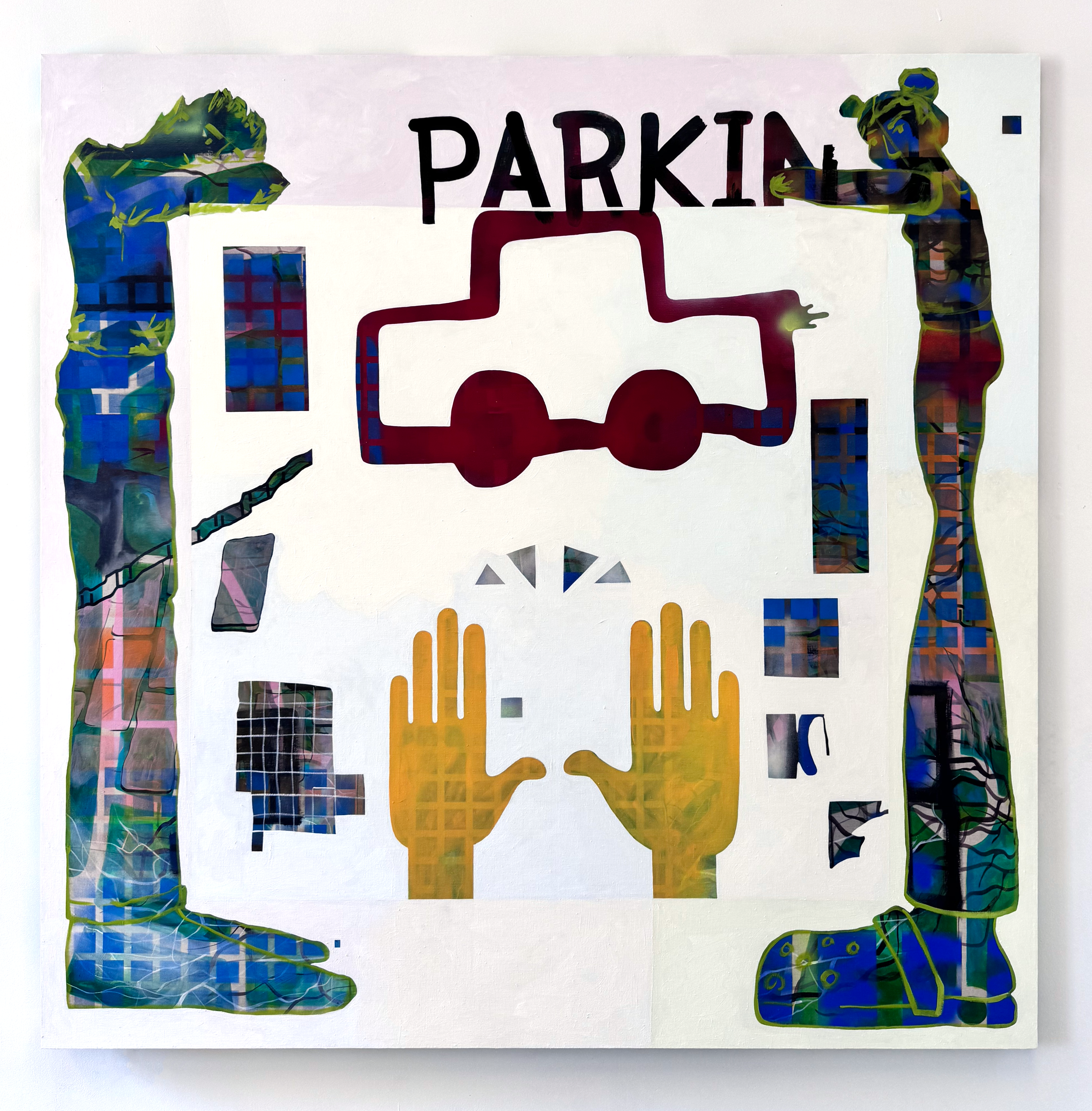 Using acrylic, spray paint, flashe and oil I explore low-relief sculptural elements to craft paintings that expound upon societal structures through “carchitecture.” My practice revolves around education and grasping at knowledge woven into the fabric of the everyday so deeply that it feels impossible to comprehend without drowning in the weight of what is to be learned.